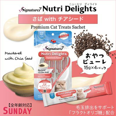他の画像を見る 【賞味期限 2026年5月18日】シグネチャー7 ニュートリ ディライト ピューレ さばwithチアシード (日) 15g×4本 保護団体様としてご登録の方は支援価格が表示されます 一般通常価格 ¥ 400 税込 カートに入れる お気に入りに登録する