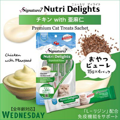 他の画像を見る 【賞味期限 2026年5月18日】シグネチャー7 ニュートリ ディライト ピューレ チキン&亜麻仁 (水) 15g×4本 保護団体様としてご登録の方は支援価格が表示されます 一般通常価格 ¥ 400 税込 カートに入れる お気に入りに登録する