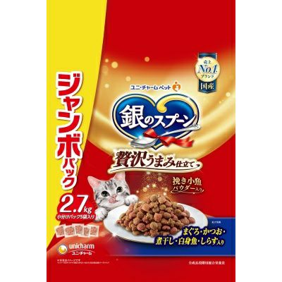 他の画像を見る 【賞味期限2026年5月】銀のスプーン贅沢うまみ仕立てまぐろ・かつお・煮干し・白身魚・しらす入り2.7kg 保護団体様としてご登録の方は支援価格が表示されます 一般通常価格 ¥ 2,780 税込 受付終了 詳細を見る お気に入りに登録する