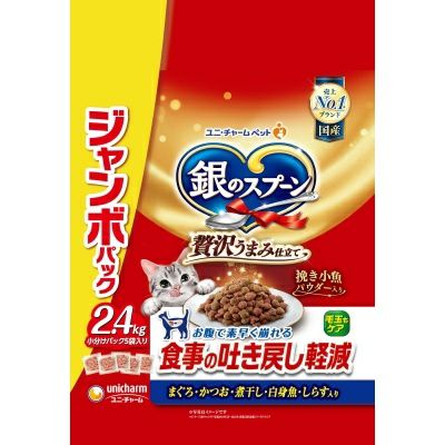 他の画像を見る 【賞味期限2026年6月】銀のスプーン贅沢うまみ仕立て食事の吐き戻し軽減フードまぐろ・かつお・煮干し・白身魚・しらす入り2.4kg 保護団体様としてご登録の方は支援価格が表示されます 一般通常価格 ¥ 2,780 税込 受付終了 詳細を見る お気に入りに登録する