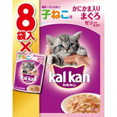 他の画像を見る 【賞味期限2026年5月24日】KMP76 カルカン パウチ 12ヵ月までの子ねこ用 かにかま入りまぐろ 70g 8袋パック 保護団体様としてご登録の方は支援価格が表示されます 一般通常価格 ¥ 1,200 税込 受付終了 詳細を見る お気に入りに登録する