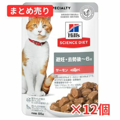 【賞味期限2025年12月】●ヒルズ サイエンス・ダイエット避妊 去勢後~6歳 サーモン パウチ 85g×12個 まとめ売り