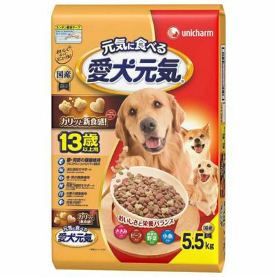 【賞味期限2026年1月】愛犬元気 13歳以上用 ささみ・ビーフ・緑黄色野菜・小魚入り 5.5kg